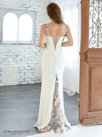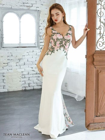 3. 【JEANMACLEAN/ジャンマクレーン】フラワー刺繍デザイン×マーメイド タイトロングドレス[アイボリー][カレン/高級キャバドレス着用]
