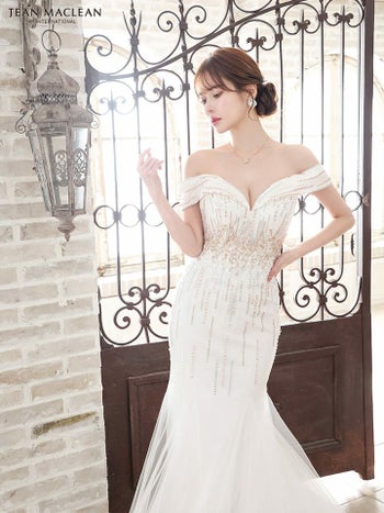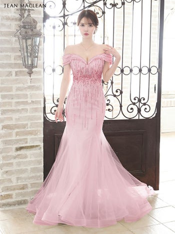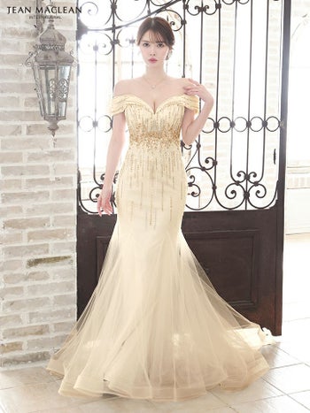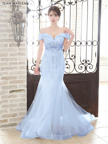 4. 【JEANMACLEAN/ジャンマクレーン】オープンバスト オフショルダー スパンコール 刺繍 チュール バースデー マーメイドロングドレス (51804)