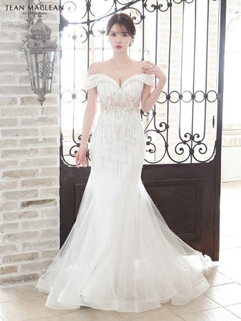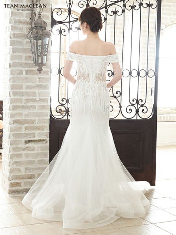 3. 【JEANMACLEAN/ジャンマクレーン】オープンバスト オフショルダー スパンコール 刺繍 チュール バースデー マーメイドロングドレス (51804)