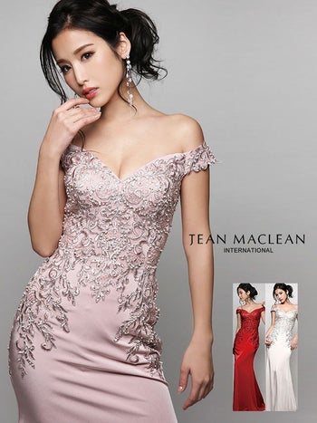 4. 【JEANMACLEAN/ジャンマクレーン】ビジュ刺繍 オフショルダー タイトロングドレス[3color]