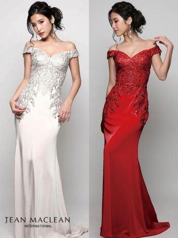 3. 【JEANMACLEAN/ジャンマクレーン】ビジュ刺繍 オフショルダー タイトロングドレス[3color]