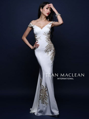 3. 【JEANMACLEAN/ジャンマクレーン】刺繍レース ダ― オフショルダー タイトロングドレス