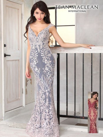LaLaTulleが選ぶ優雅さ溢れる大人の女性へ格上げするキャバドレス♪ 【JEANMACLEAN/ジャンマクレーン】デザイン刺繍 スピンドル付き マーメイド タイトロングドレス