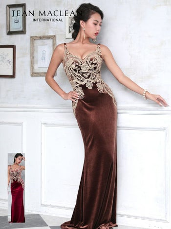 3. 【JEANMACLEAN/ジャンマクレーン】ベロア×刺繍レース タイトロングドレス