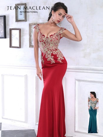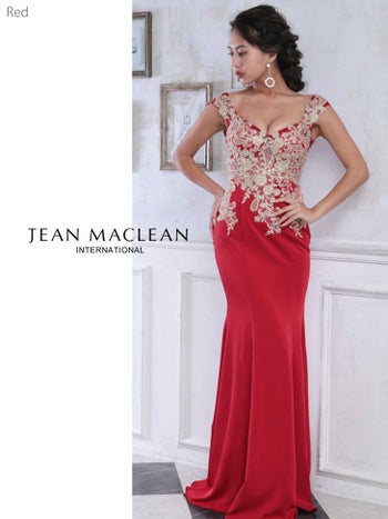 3. 【JEANMACLEAN/ジャンマクレーン】ウエスト シースルー×レース タイトロングドレス[レッド]