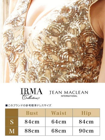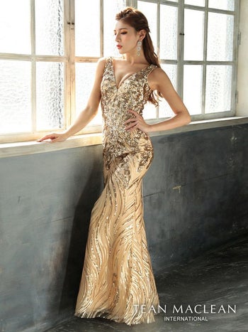 4. 【JEANMACLEAN/ジャンマクレーン】スパンコールデザイン刺繍 マーメイド タイトロングドレス[シャンパンゴールド]