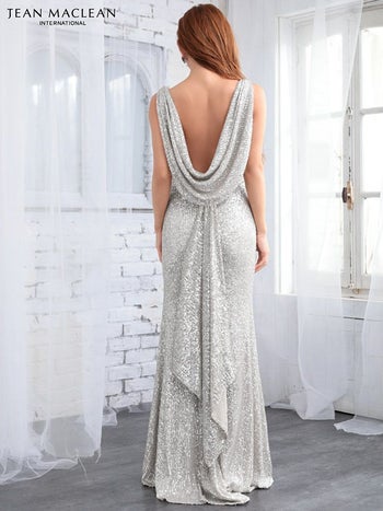 3. 【JEANMACLEAN/ジャンマクレーン】バックドレープ スパンコール タイトロングドレス[アイボリー]