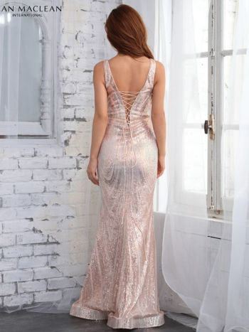 3. 【JEANMACLEAN/ジャンマクレーン】スパンコールレース タイトロングドレス[シャンパン]