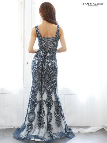 4. 【JEANMACLEAN/ジャンマクレーン】ダマスク柄デザイン スパンコール刺繍 マーメイド タイトロングドレス[1color]