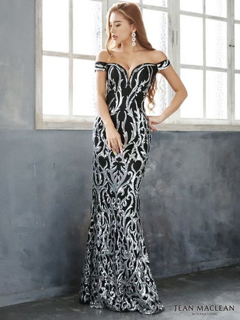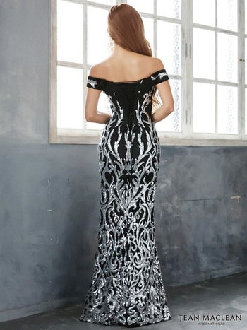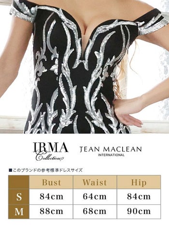 【JEANMACLEAN/ジャンマクレーン】スパンコール刺繍 ワンカラー オフショルダー タイトロングドレス[アイボリー×シャンパン]