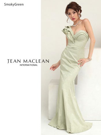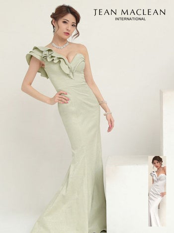 3. 【JEANMACLEAN/ジャンマクレーン】フリルスリーブ ジャガード マーメイド ワンショルダー タイトロングドレス