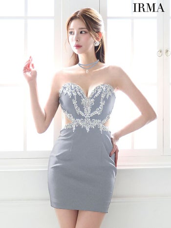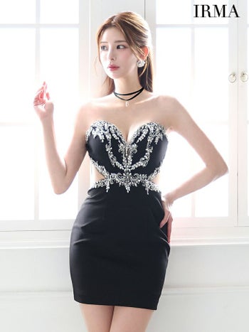 キャバドレス IRMA イルマ ビジュー チョーカー くびれ透け ストレッチ ベア タイトミニドレス