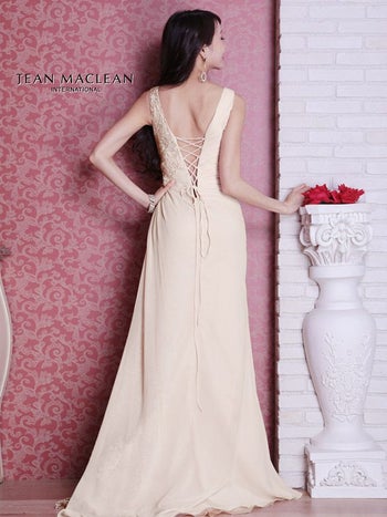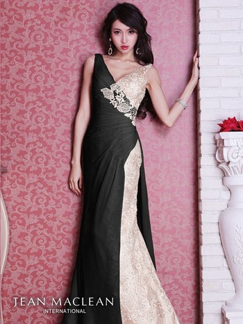 4. 【JEANMACLEAN/ジャンマクレーン】レース×タックシフォン タイトロングドレス[ブラック×シャンパン][Lあり]