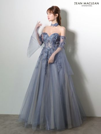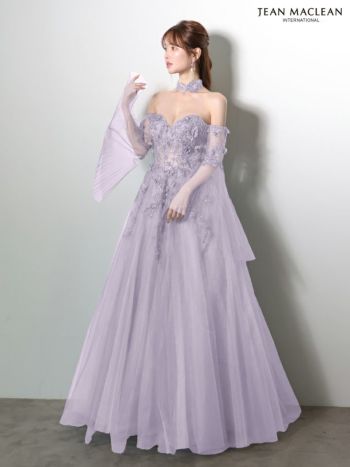 ふんわりシルエットで存在感抜群◎ 予約商品【2月中旬入荷予定】【JEANMACLEAN/ジャンマクレーン】ベアトップ 袖付き 長袖 チョーカー フレアスリーブ バックスピンドル Aラインロングドレス (61037)