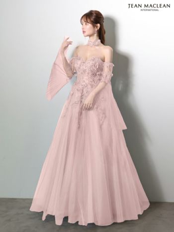 4. 予約商品【2月中旬入荷予定】【JEANMACLEAN/ジャンマクレーン】ベアトップ 袖付き 長袖 チョーカー フレアスリーブ バックスピンドル Aラインロングドレス (61037)