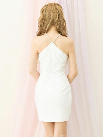 4. 【Angel R/エンジェルアール】ガーリー ホルターネック パール フリルデザイン バストカット ビジュー ドット柄 タイトミニドレス (AR25312)