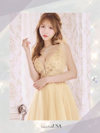 キャバドレス LaLaTulle select [インポート] llt-mdla823895 スパンコール 刺繍レース リボンショルダー チュール フレア ミニドレス(2color)(XS/S)[ゆんころ]画像3