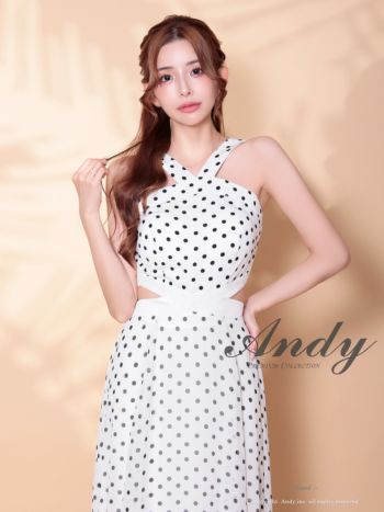 キャバドレス Andy アンディ シフォン カットアウト ドット柄 ホルターネック Aラインロングドレス