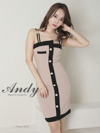 タイトワンピースがスタイルよく見せてくれる1着☆ 【Andy/アンディ】キャミソール パールボタン ツートーンカラー タイトミニドレス(AN-ON2782)