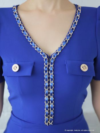 4. 【Andy/アンディ】フロントジップ ワンカラー チェーン バックリボン 半袖 タイトミニドレス(anon2827)