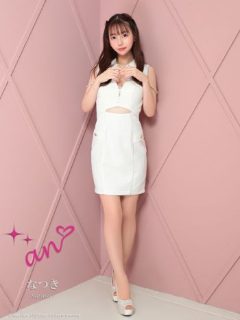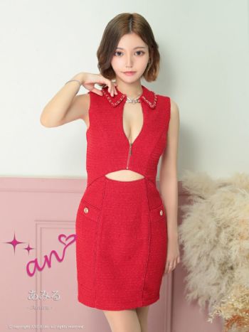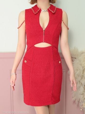 キャバドレス タイトミニドレス an アン ツイード チェーン ジップデザイン 襟付き ノースリーブ