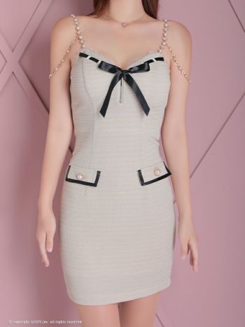 3. 【an/アン】ジップデザイン リボン キャミソール チェーン 飾りポケット ビジュー パール タイトミニドレス(aoc3747)