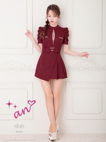 キャバドレス an アン パフスリーブ チェーン アシンメトリー ラメ セットアップ ジップデザイン 半袖 フレアミニドレス