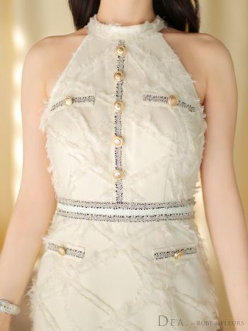 4. 【DEA.by ROBE de FLEURS/ディア】ゴールドボタン フェミニンフリンジ アメリカンスリーブ タイトミニドレス(DE3707)