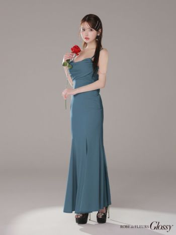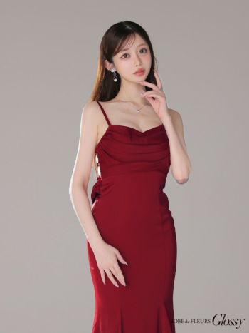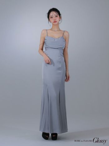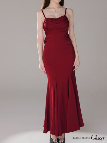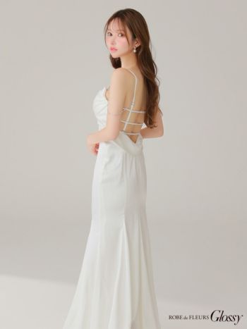 3. 予約商品【2月上旬入荷予定】【Glossy by ROBE de FLEURS/グロッシー】サテン ビジューチェーン セクシー オープンバスト キャミソール マーメイドロングドレス (GL3768)