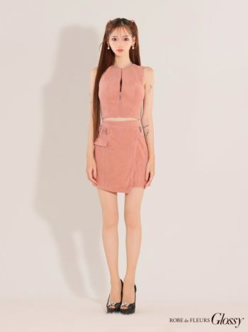 XSあり!大人っぽい印象に☆ 【Glossy by ROBE de FLEURS/グロッシー】ラップベルト セットアップ セクシー ノースリーブ ジップデザイン タイトミニドレス (GL3264)