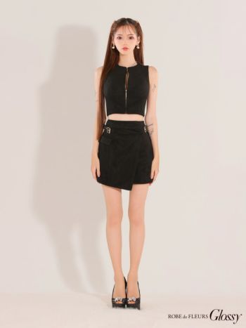 3. 【Glossy by ROBE de FLEURS/グロッシー】ラップベルト セットアップ セクシー ノースリーブ ジップデザイン タイトミニドレス (GL3264)