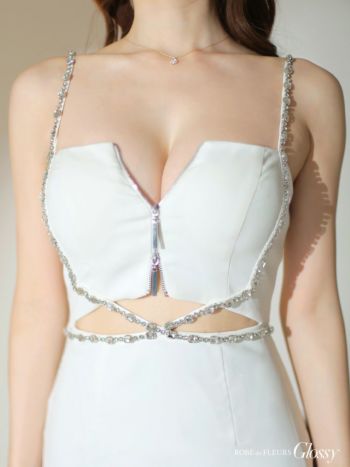 3. 【Glossy by ROBE de FLEURS/グロッシー】キャミソール クロスビジュー ワンカラー ウエストカット バストジップ タイトミニドレス(GL3509)