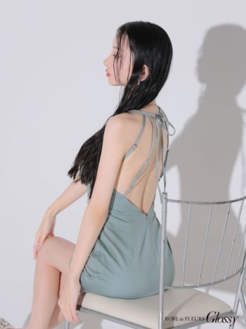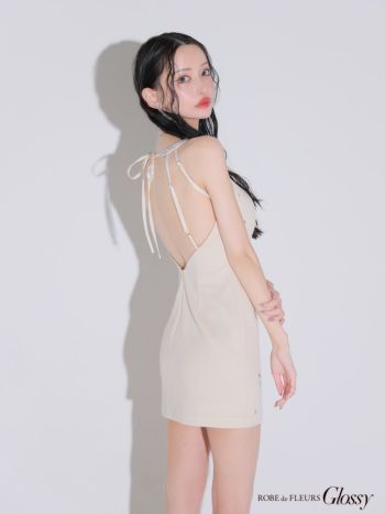 4. 予約商品【2月下旬入荷予定】【Glossy by ROBE de FLEURS/グロッシー】セクシー オープンバスト キャミソール ビジューホルター タイトミニドレス (GL3594)