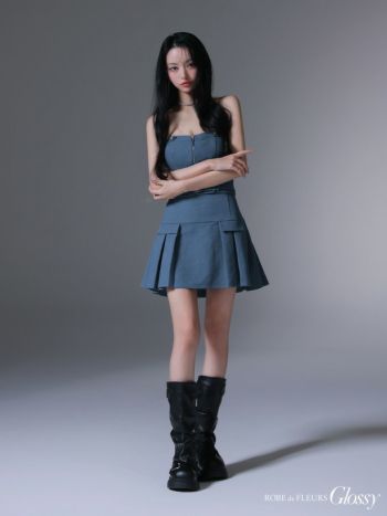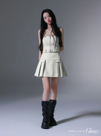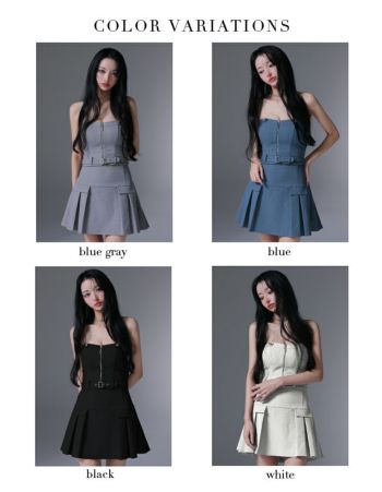 4. 【Glossy by ROBE de FLEURS/グロッシー】キャミソール セットアップ ベア ジップデザイン ウエストベルト プリーツ フレアミニドレス (GL3943)