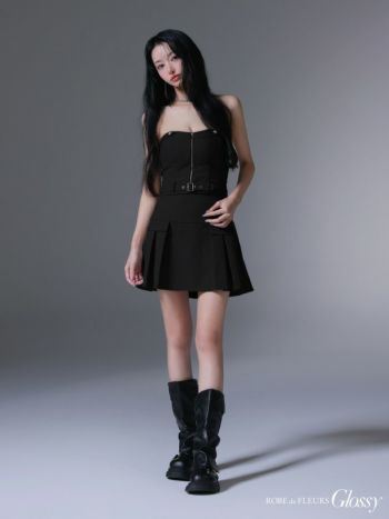 3. 【Glossy by ROBE de FLEURS/グロッシー】キャミソール セットアップ ベア ジップデザイン ウエストベルト プリーツ フレアミニドレス (GL3943)