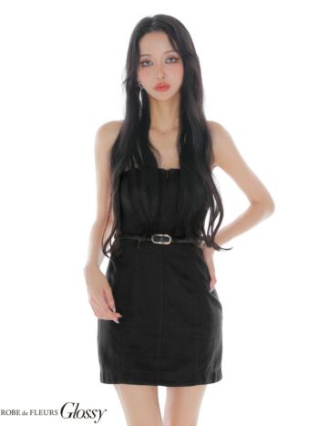 キャバドレス Glossy グロッシー ROBE de FLEURS ローブドフルール ツイード ベアトップ ジップデザイン ウエストベルト タイトミニドレス