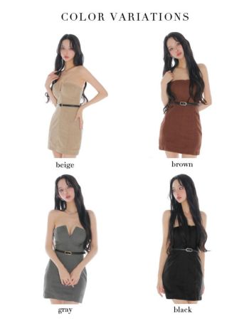 3. 【Glossy by ROBE de FLEURS/グロッシー】ツイード ベアトップ ジップデザイン ウエストベルト タイトミニドレス (GL4331)