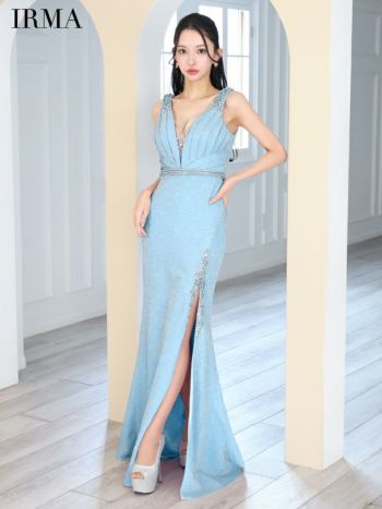キャバドレス IRMA イルマ セクシー オープンバスト ノースリーブ ビジュー スリット タイトロングドレス