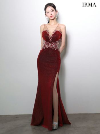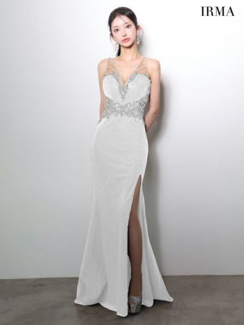 美しさに思わず見惚れる♡ 予約商品【4月下旬入荷予定】【IRMA/イルマ】ノースリーブ ビジュー ラメニット バースデー バックレースアップ スリット タイトロングドレス(51971)
