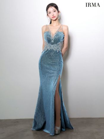 キャバドレス IRMA イルマ ノースリーブ ビジュー ラメニット バースデー バックレースアップ スリット タイトロングドレス