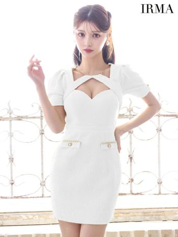 キャバドレス IRMA イルマ カットアウト 半袖 ワンカラー ゴールドチェーン タイトミニドレス