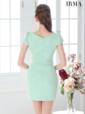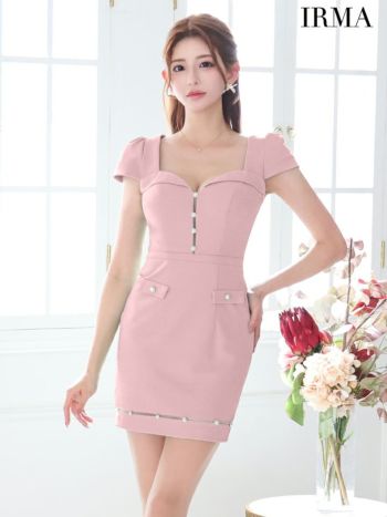 キャバドレス IRMA イルマ ワンカラー フロントボタン パールボタン スクエアカット 半袖 タイトミニドレス