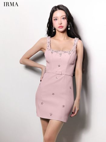XSあり!ベルトは取り外し可能♪ 予約商品【3月中旬入荷予定】【IRMA/イルマ】ノースリーブ ビジュー ウエストベルト ガーリー タイトミニドレス (61048)