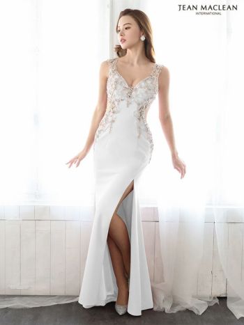 4. 【JEANMACLEAN/ジャンマクレーン】フラワービジュー ワンカラー ノースリーブ サイドスリット ロングドレス(41590)