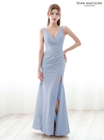 4. 【JEANMACLEAN/ジャンマクレーン】スリット クロスデザイン ワンカラー ノースリーブ タイトロングドレス(51880)