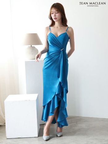 3. 【JEANMACLEAN/ジャンマクレーン】キャミソール オープンバスト ドレープデザイン サテン マーメイドロングドレス(51898)