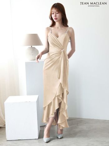 キャバドレス JEANMACLEAN ジャンマクレー キャミソール オープンバスト ドレープデザイン サテン マーメイドロングドレス