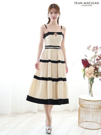 ふわっとスカートが揺れてドキっとさせちゃう♡ 【JEANMACLEAN/ジャンマクレーン】ウエストマーク カットアウト チェーン フレア キャミソール Aラインロングドレス(55082)