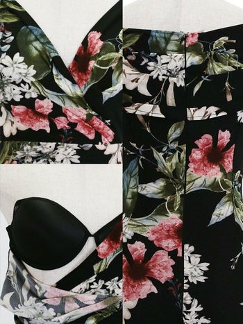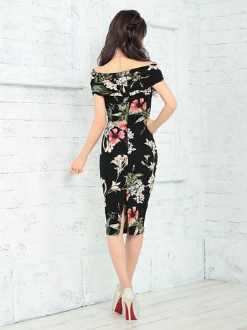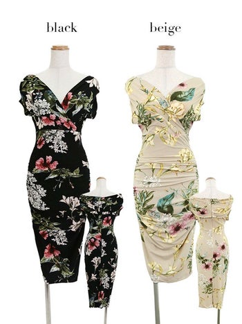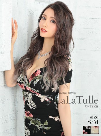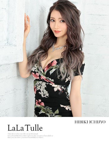 LaLaTulleの品番61022のフラワープリントストレッチタイトミニドレス