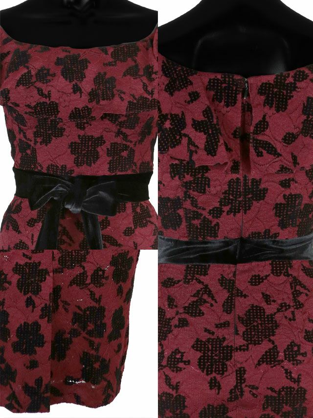 3. SALE【LaLaTulle】フリル×花柄 袖あり オフショルダー タイト 膝丈ドレス